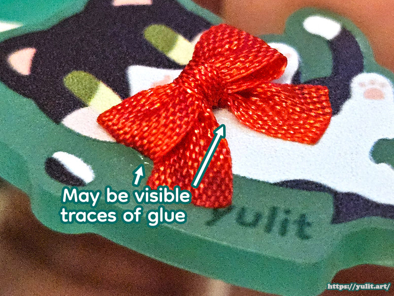 Each keychain may look slightly different as ribbons are handmade and glued by hand. There may be minor traces of glue visible.