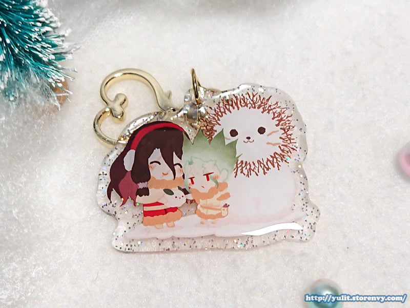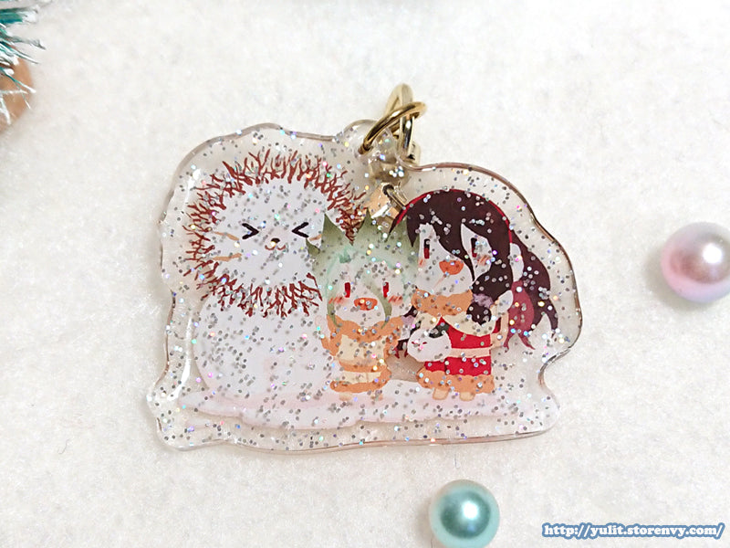 Printed on clear acrylic with hand poured resin and glitters on the back.