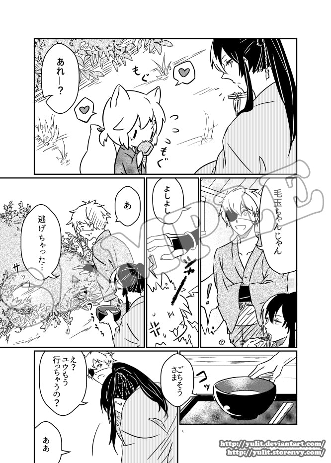 D. Gray-man Doujinshi in ancient Japan setting offering story between samurai Kanda and Fox Allen.