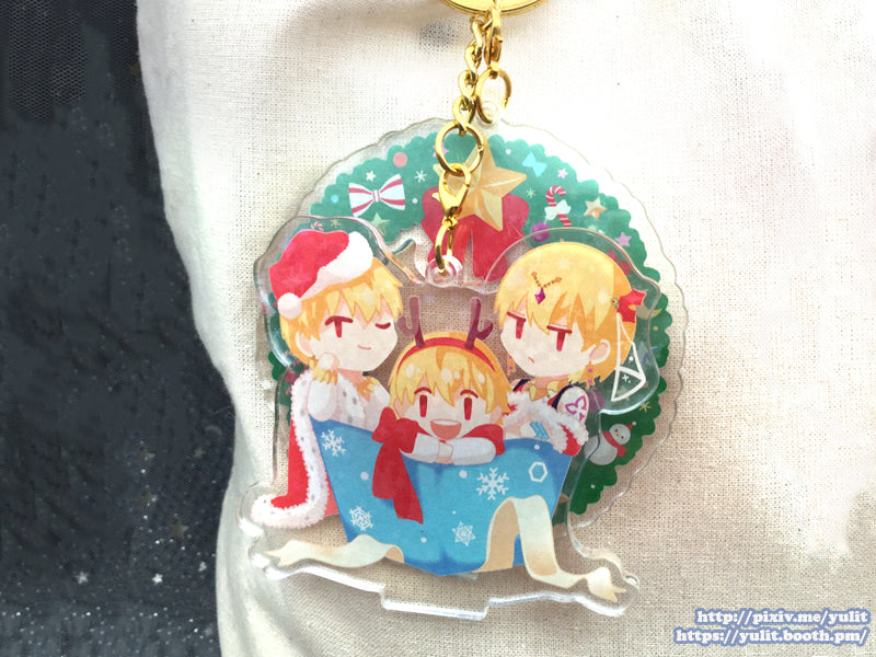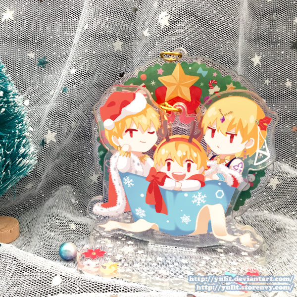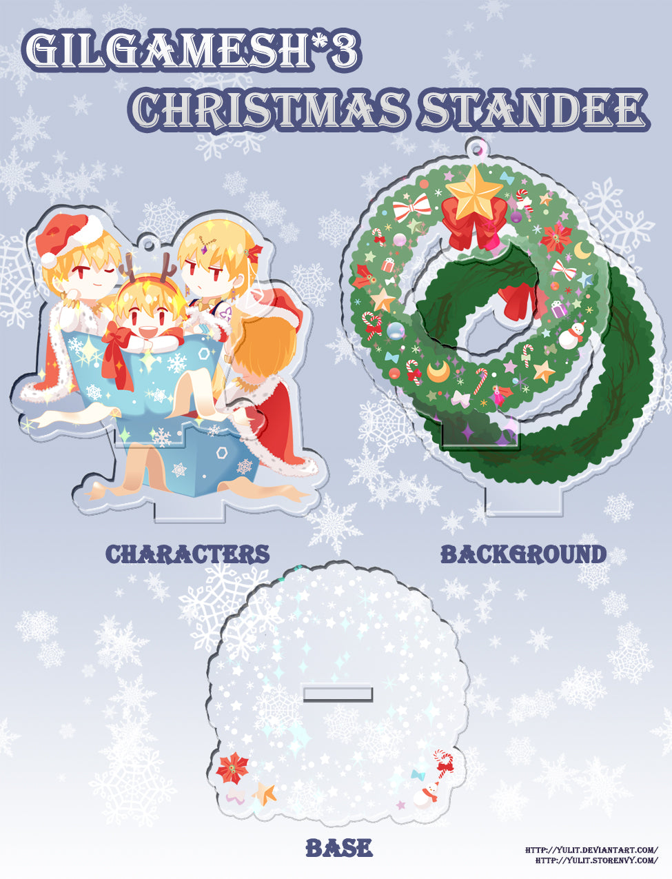 Professionally printed Standee featuring all forms of Gilgamesh: Archer, Caster, and Kid-Gil with additional piece of Christmas wreath as background. A must-have for all Gil's fans!