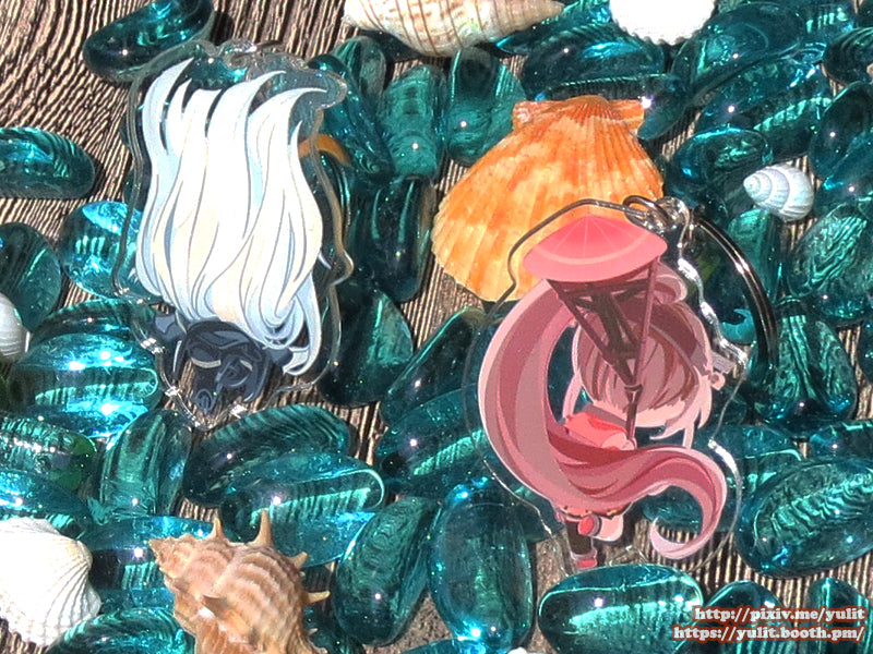 Double-sided professionally printed high Gloss Clear Acrylic Keychain featuring Yamato and U-511.