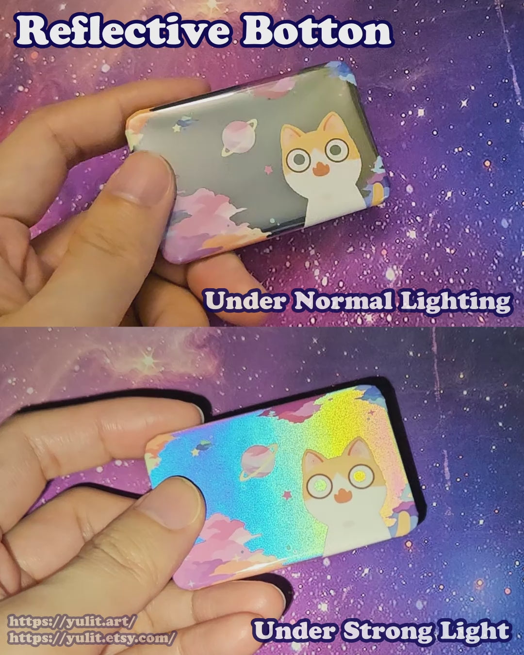 Original - Space Cat Meme Inspired Reflective/Holographic Button