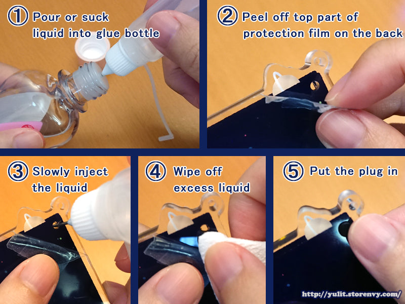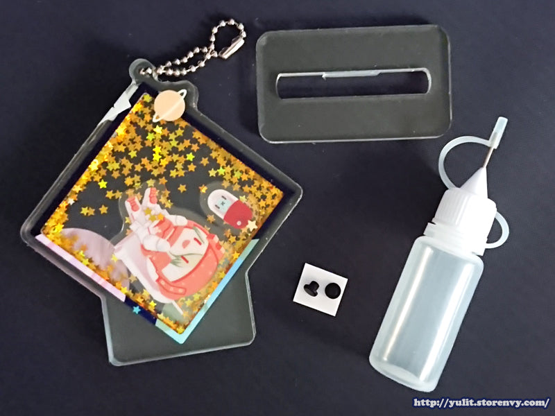 Baby oil is recommended for filling up the shaker, and glue bottle is included.